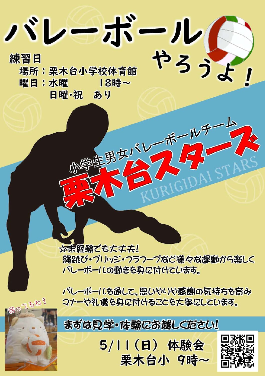川崎市麻生区で活動している小学生バレーボールクラブ「栗木台スターズ」です。